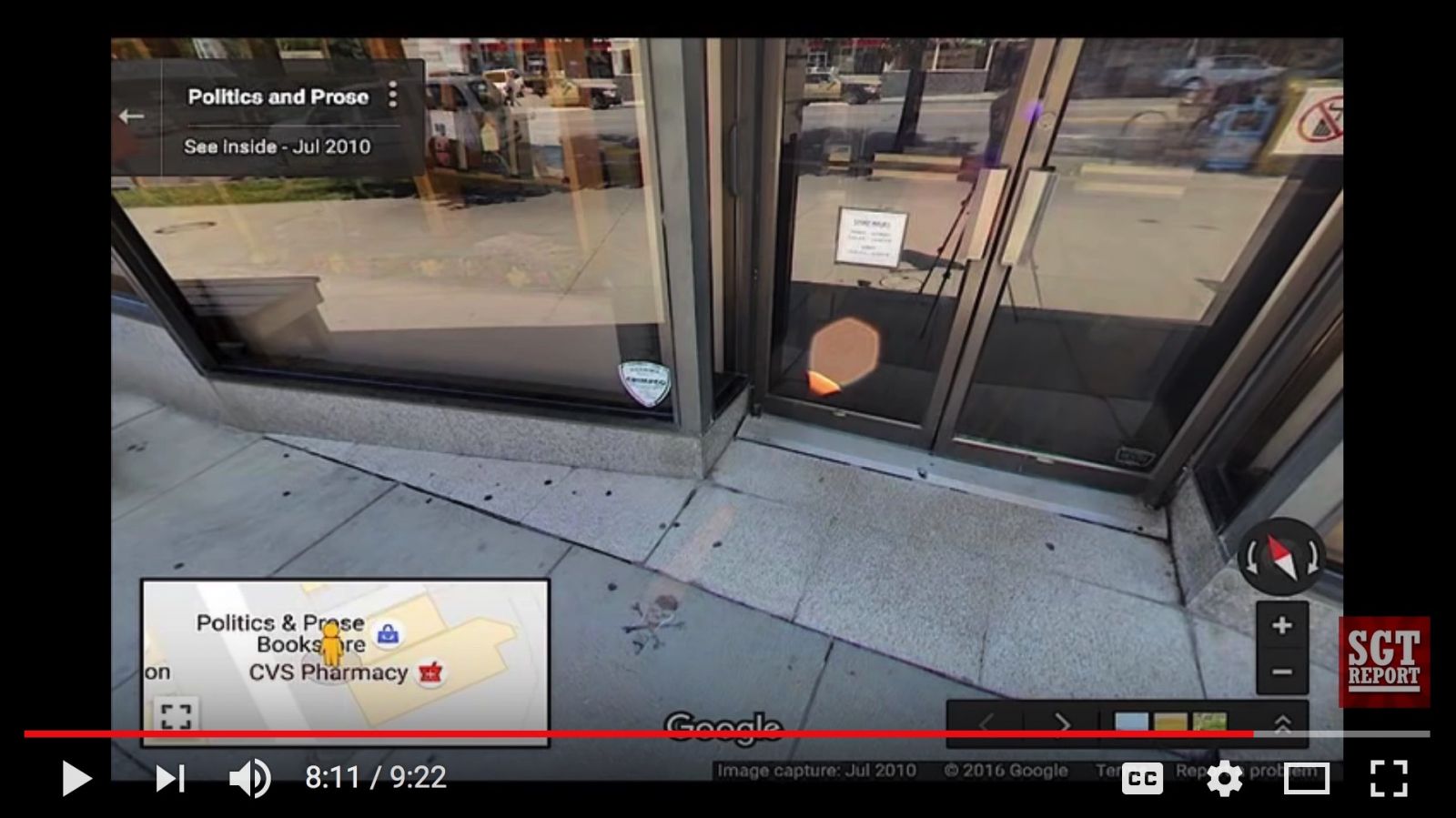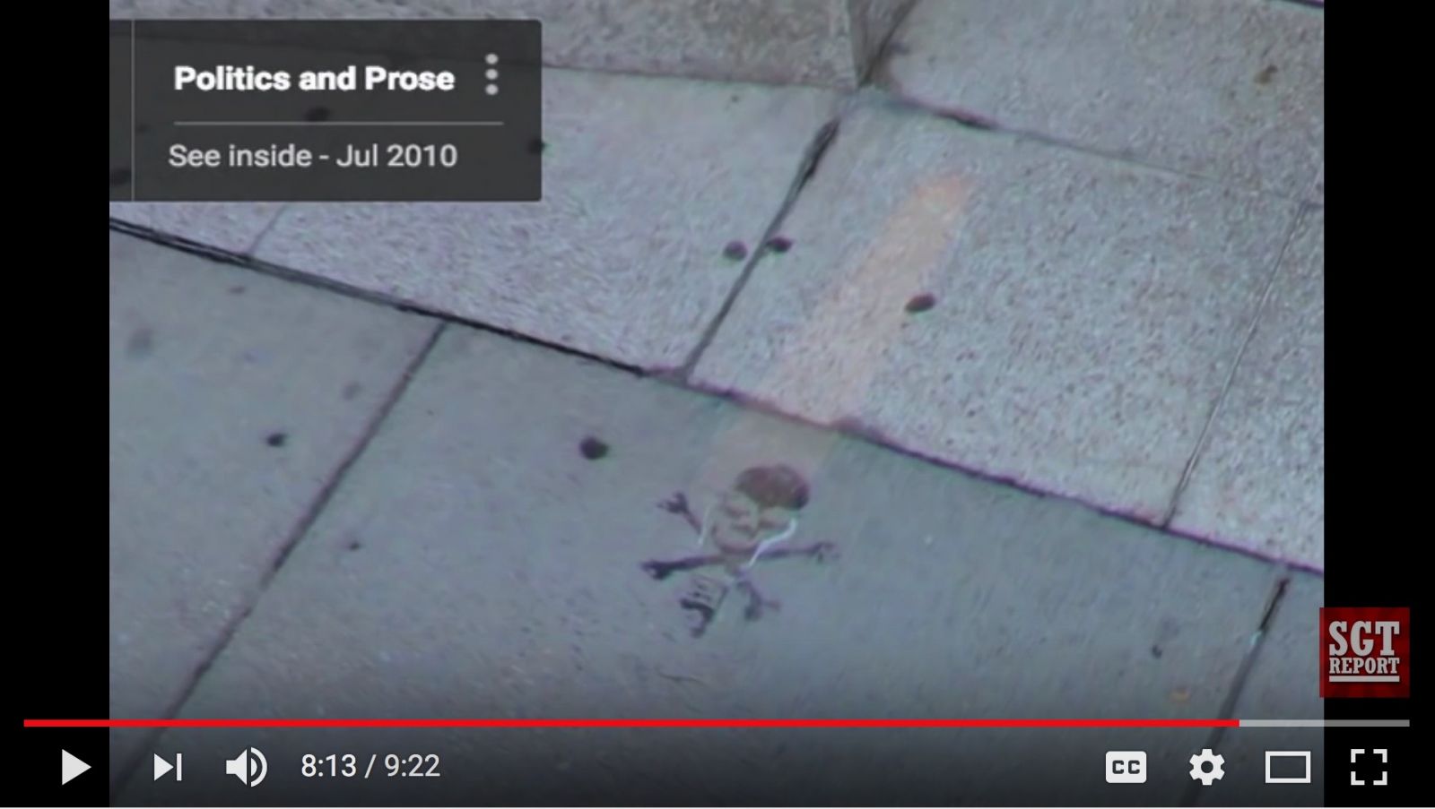Estas dos capturas de pantalla de un video de Sgt Report revela el símbolo de Skull and Bones claramente visible en la banqueta en frente de Politics & Prose, ya desde julio del 2010.