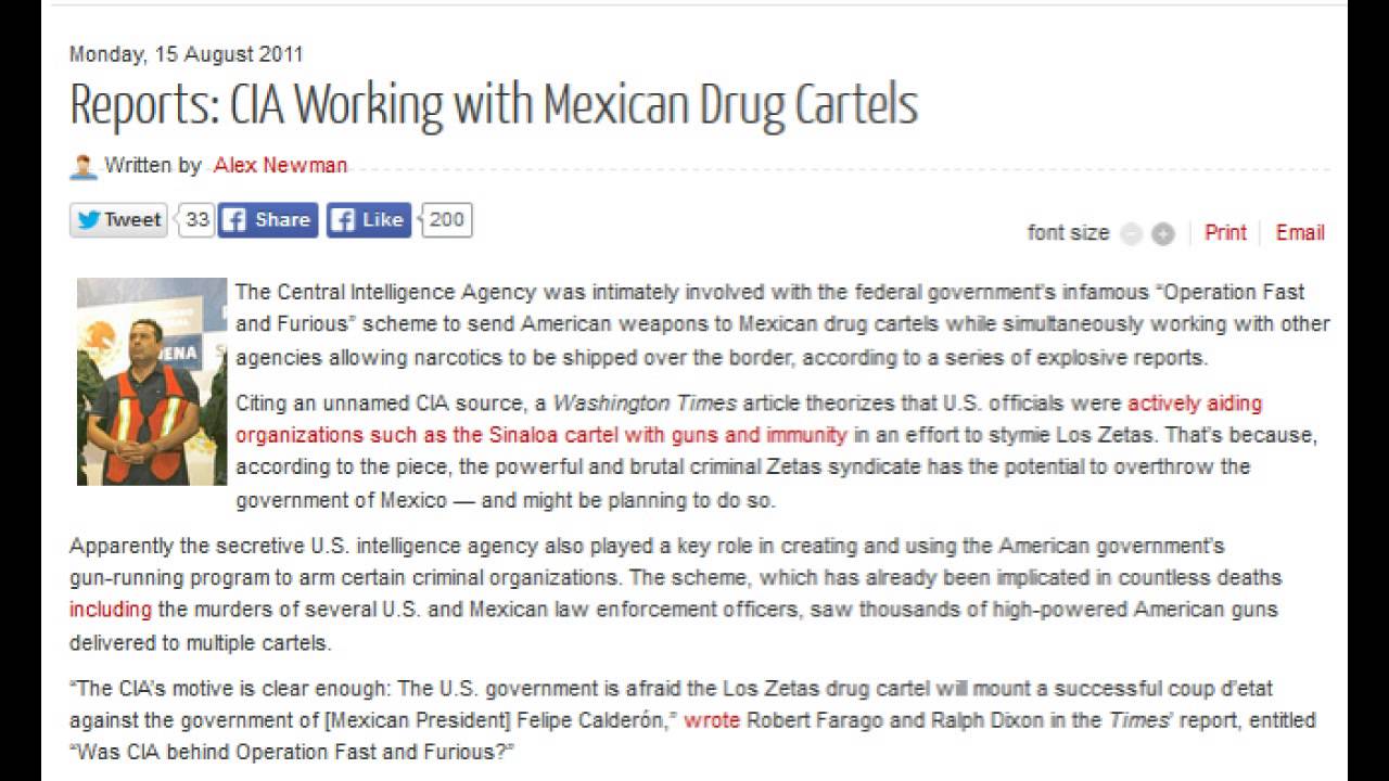 Con base en más de 100 entrevistas con funcionarios actuales y ex funcionarios de ambos lados de la frontera, así como documentos oficiales de los gobiernos de Estados Unidos y México, El Universal, de México, concluyó que la Administración de Control de Drogas de los Estados Unidos (DEA) ), Y el Departamento de Justicia de los Estados Unidos había trabajado secretamente con los narcotraficantes mexicanos.