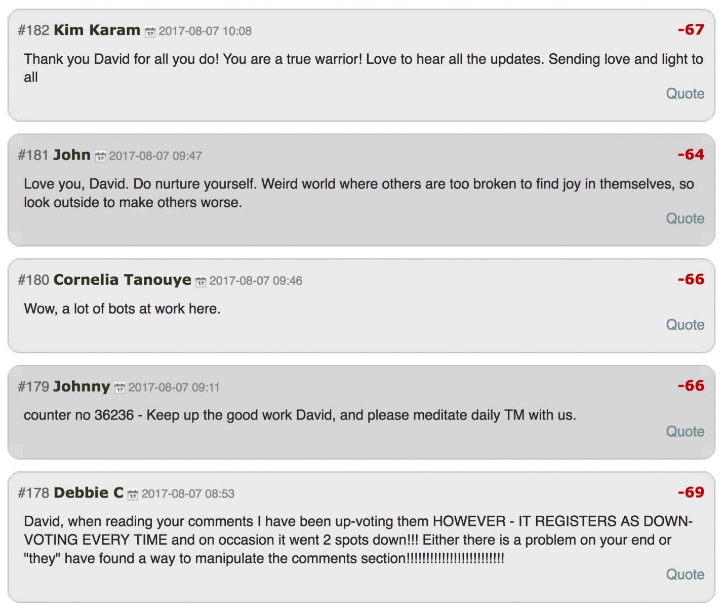 Casi inmediatamente después de nuestro artículo subió de regreso, el sistema de votación de comentarios en nuestro sitio fue atacado, creando un ridículo número de down-votes en cada comentario positivo.