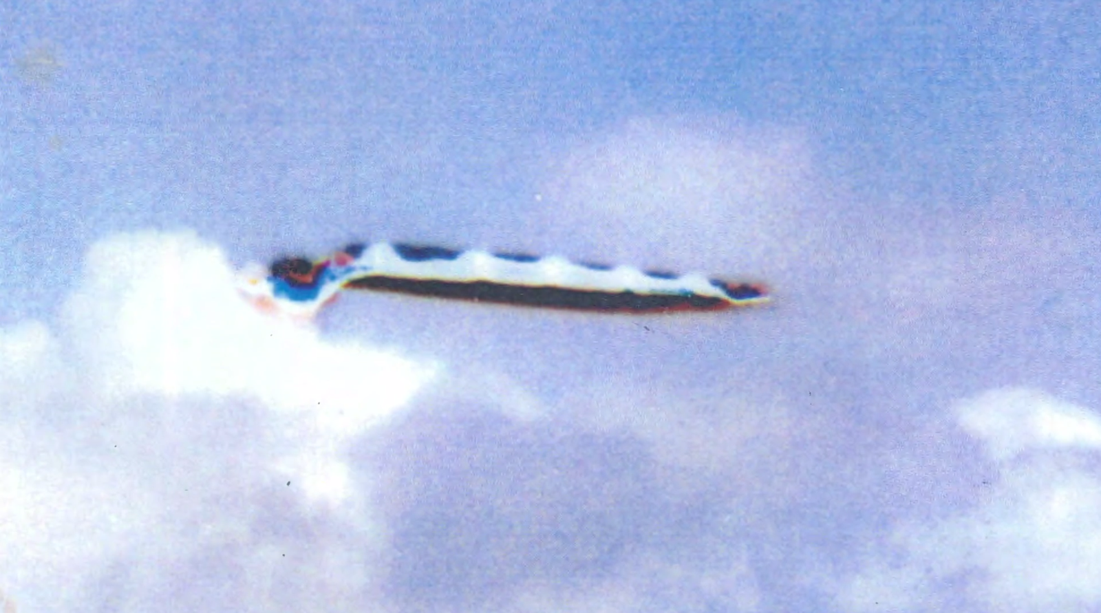 Mira lo que está saliendo de la parte de atrás en color — cinco gases separados que salen de este petrolero reptil, dejando caer cinco gases a 300 pies.