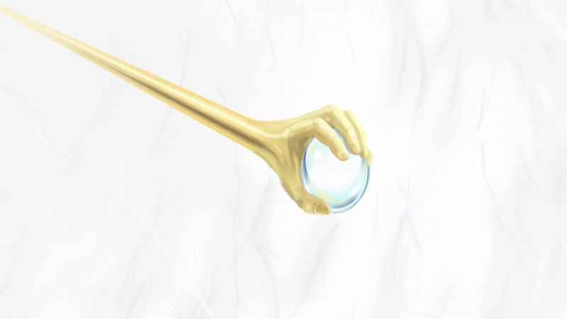 CG: Y todo un pedazo. No era una habitación super grande. Era aproximadamente del mismo tamaño de las habitaciones más pequeñas del portal. Y miré directamente hacia arriba para ver una barra de oro salir del techo con una mano y una bola de cristal dentro de la mano.