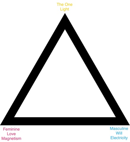 Estos 3 puntos, el Uno, y masculino-femenino, crean la trinidad original, el triángulo básico que está en la base de la creación: