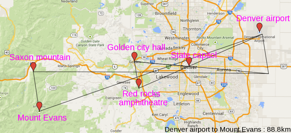 Luego hice otro triángulo conectando con el aeropuerto de Denver: