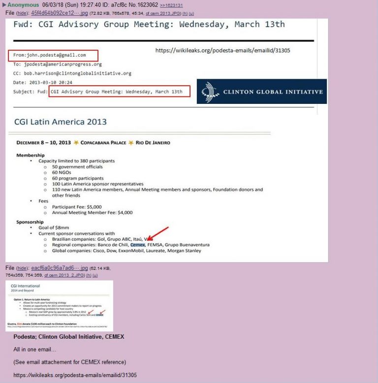 JOHN PODESTA – CLINTON GLOBAL INSTITUTE – CEMEX – ¡¡TODO EN UN CORREO !!! – John Podesta @ American Progress Org. Correo electrónico: reunión de CGI (Clinton Global Initiative) del 8 al 10 de diciembre de 2013, Copacabana Palace, Río de Janeiro. CEMEX fue uno de los patrocinadores de la conferencia y figura en la lista.