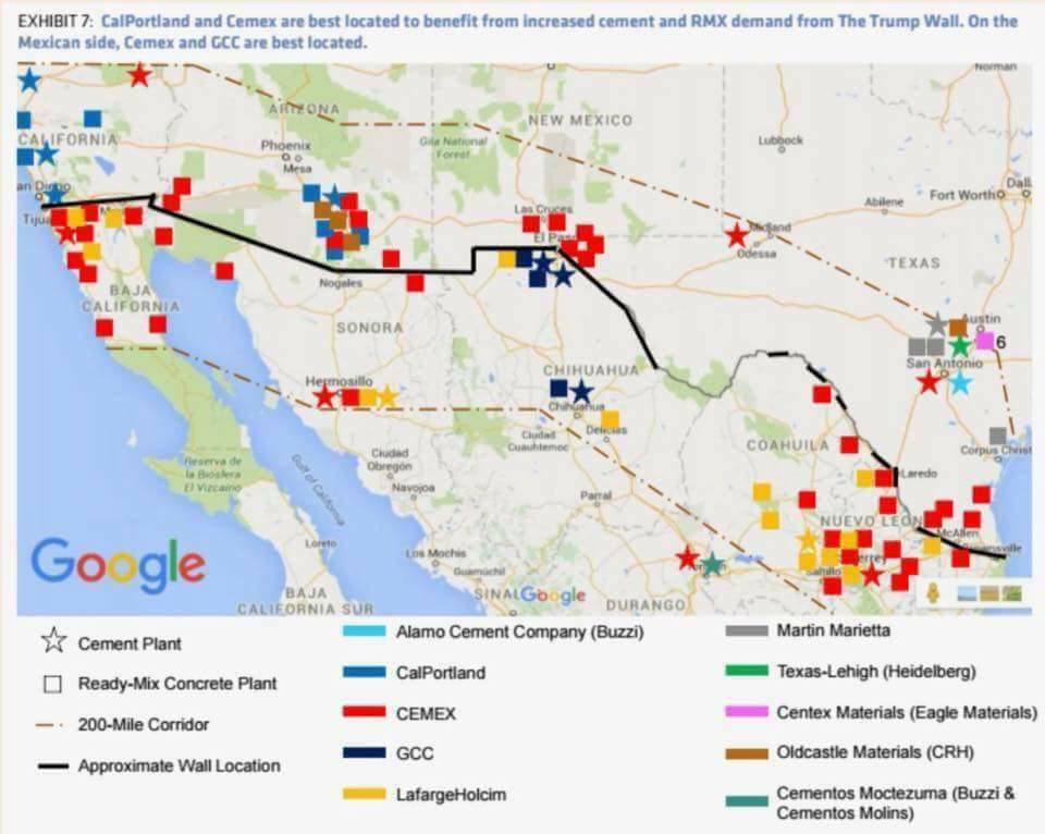 La prensa ha estado en llamas con los informes de que México se está oponiendo a las demandas de Trump de que paguen, de una forma u otra, por el muro. Algunos especulan que la pared no se construirá en absoluto. Pero la investigación de Disobedient Media indica que no solo se construirá el muro, sino que tiene un fuerte respaldo entre ciertos intereses empresariales mexicanos, como el productor de cemento Cemex que ha estado presionando activamente para garantizar que Trump y sus aliados tomen posesión y comiencen la construcción. … De acuerdo con la información publicada por el Global Cement Directory, Cemex es el mayor productor de cemento en América del Norte y no tiene competidores estadounidenses de igual tamaño.