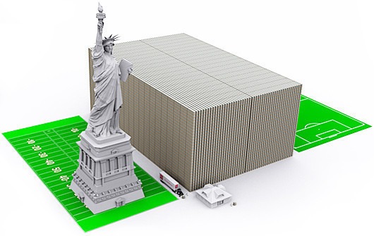 El gráfico del título de este artículo es una ilustración de cómo se verían los 15 billones de billetes de 100 dólares. Una estimación de la cantidad de dinero robado que se puede recuperar es, literalmente, el doble de esta cantidad.