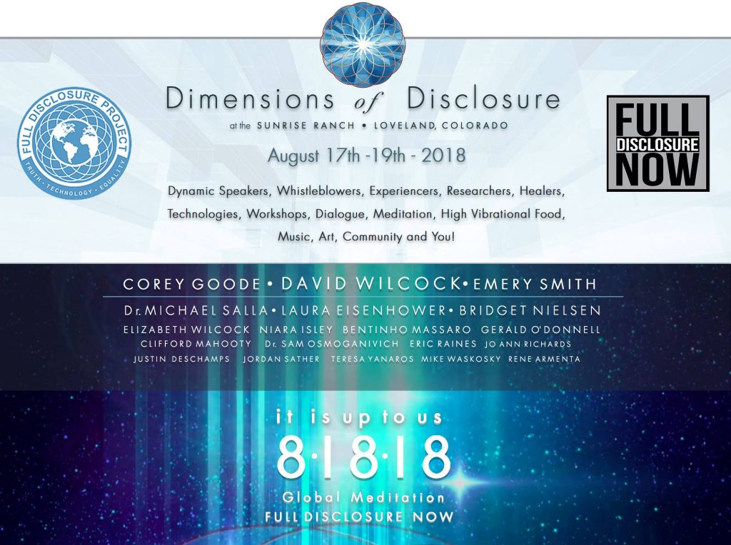 Además, por último, apareceré en el evento Dimensions of Disclosure de Corey Goode, el 18 de agosto de 2018.