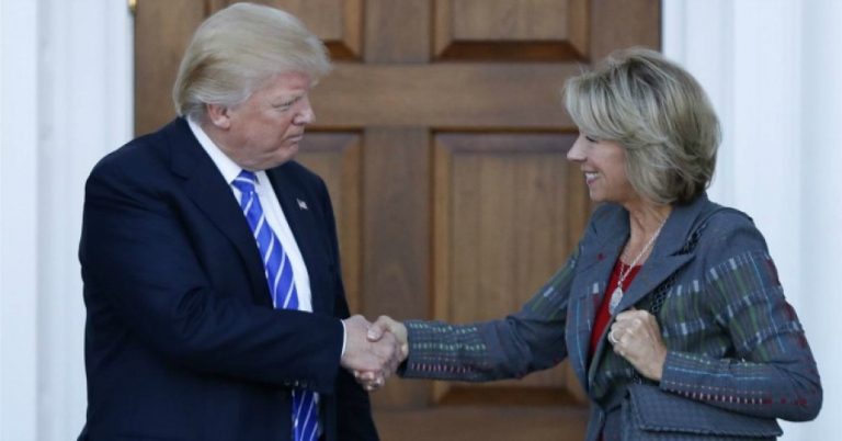 Trump ha sido aconsejado por Erik Prince y Joseph Schmitz y ambos son caballeros Vaticano-Romanos y ex-ejecutivos de Blackwater. Trump designó a la hermana de Erik Prince, Betsy DeVos, como Secretaria de Educación de los Estados Unidos. El marido de Betsy, DeVos, es el multimillonario Dick DeVos y su multimillonario padre Richard DeVos fundó Amway con Jay Van Andel, quien donó cerca de 2 millones a la campaña presidencial de George Walker Bush. También Joseph Schmitz fue inspector general del Departamento de Defensa bajo Bush hijo y Blackwater de Erik Prince estaba en contrato con el ejército de Estados Unidos bajo Bush hijo.