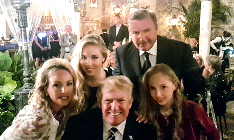 Trump es amigo del príncipe Roffredo Gaetani de la nobleza romano-vaticana y su ex-esposa Ivana Trump y él salieron durante años. La Casa de Gaetani produjo dos Papas. En la imagen de arriba, el príncipe Roffredo tiene sus manos alrededor de la cintura de su novia Ivana y también alrededor de la cintura de Ivanka, de dieciséis años, con Trump presente en la fiesta.