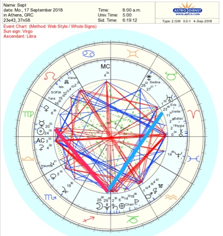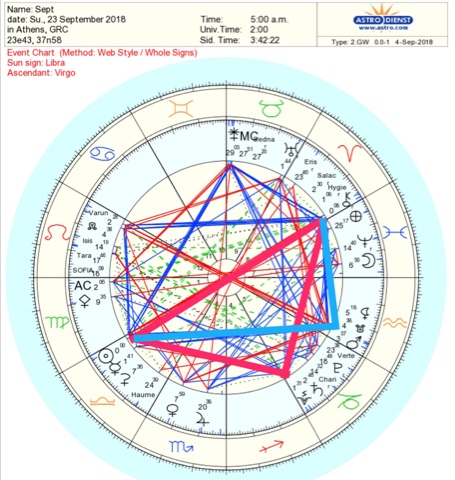 Luego vendrá el equinoccio de septiembre el día 23. En el equinoccio, el Sol entra en Libra, trayendo energías de Justicia, Equilibrio, reconciliando opuestos. El Sol se opondrá a Quirón y al asteroide Hygeia en Aries, mientras que Vesta junto con Saturno en Capricornio formarán un doble cuadrado con Sol y Quirón.