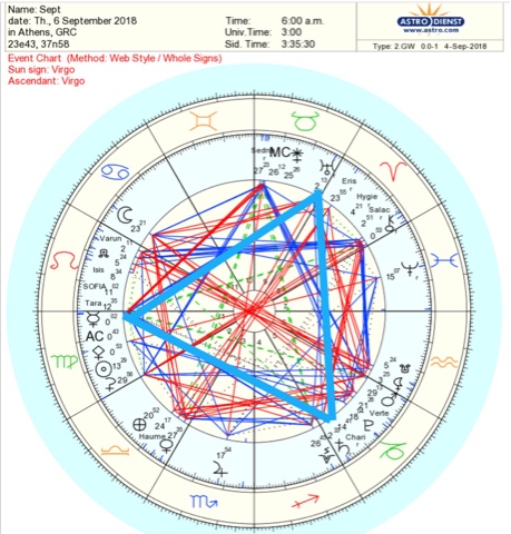 Mañana, del 5 al 6 de septiembre, un gran trígono que involucra a Mercurio y Atenea en Virgo, Saturno en Capricornio, y Urano en Tauro se activará cuando Mercurio y Atenea entren a Virgo. Este gran trígono se activará aún más cuando Saturno, que ha estado retrógrado, se vuelva estático y entre de nuevo en dirección directa, en el mismo día.
