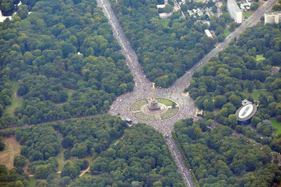 La protesta principal tuvo lugar en la plaza Great Star de Berlín (Der Große Stern), en cuyo centro se encuentra la Columna de la Victoria (Die Siegessäule):