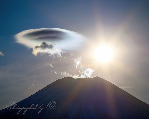 Y al final del segundo día, una nave con nubes de arco iris apareció sobre el monte Fuji: