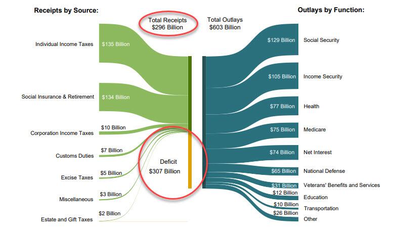 Para entender por qué debe colapsar, en febrero el gobierno de Estados Unidos gastó una asombrosa suma de 603 mil millones de dólares mientras recaudó sólo 296 mil millones de dólares en ingresos fiscales.