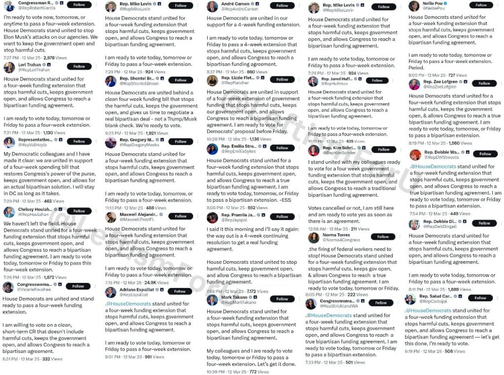 Los demócratas de la Cámara de Representantes se unen para apoyar una extensión de cuatro semanas de la financiación que frene los recortes perjudiciales, mantenga el gobierno abierto para servir a la ciudadanía y permita al Congreso alcanzar un acuerdo de financiación bipartidista. Estoy listo para votar mañana o el viernes para aprobar la extensión de cuatro semanas.