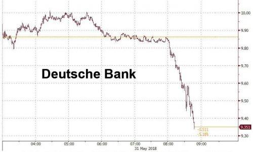 (Durden) Ya era una semana terrible para el banco más grande de Alemania, cuando la turbulencia italiana envió su precio accionario por debajo de los 10 euros por primera vez desde la crisis existencial del banco en el otoño de 2016, y esta mañana empeoró, tras los informes de que la Reserva Federal ha designado … Continue reading Deutsche Bank cae después de que la Reserva Federal designara secretamente sus operaciones en “condición problemática”