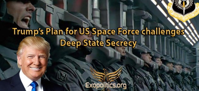 (Dr. Michael Salla) El 18 de junio, el presidente Donald Trump pronunció un discurso en el que pidió el desarrollo de una Fuerza Espacial de los Estados Unidos que se haga cargo de las funciones espaciales actuales de la Fuerza Aérea de los EE. UU. La Fuerza Espacial propuesta se convertiría en la sexta rama … Continue reading La Fuerza Espacial de los EE.UU. pone en riesgo la secrecía del Estado Profundo